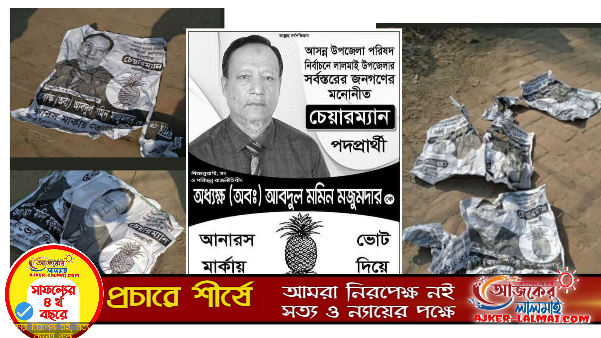 -মুখে মুখে হুমকি ধামকি দিলেও প্রতীক বরাদ্দ দেয়ার পর থেকে কোন প্রকার অপ্রীতিকর ঘটনা ছাড়াই চলছিল আসন্ন লালমাই উপজেলা পরিষদ নির্বাচনের প্রচার প্রচারণা কিন্তু গতকাল ৭ই মার্চ ও আজ ৮ ই মার্চ উপজেলার বাকই উত্তর ইউনিয়নের বিভিন্ন স্থানে আ'লীগের বিদ্রোহী প্রার্থী অধ্যক্ষ আব্দুল মমিন মজুমদারের নির্বাচনী পোস্টার ছিড়ে আগুন লাগিয়ে দেয়ার অভিযোগ করেছেন আনারস প্রতীকের প্রার্থী অধ্যক্ষ আব্দুল মমিন মজুমদার।