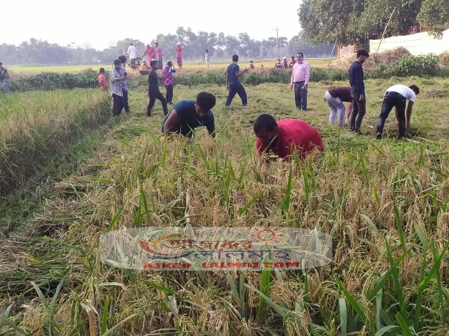 ধান কাটায় অংশ গ্রহন করেন,বাগমারা উত্তর ইউনিয়ন ৪নং ওয়াড আ'লীগের সাধারন সম্পাদক আবুল বাসার,বাগমারা বাজারারের বিশিষ্ট ব্যবসায়িক ব্যবসায়ি