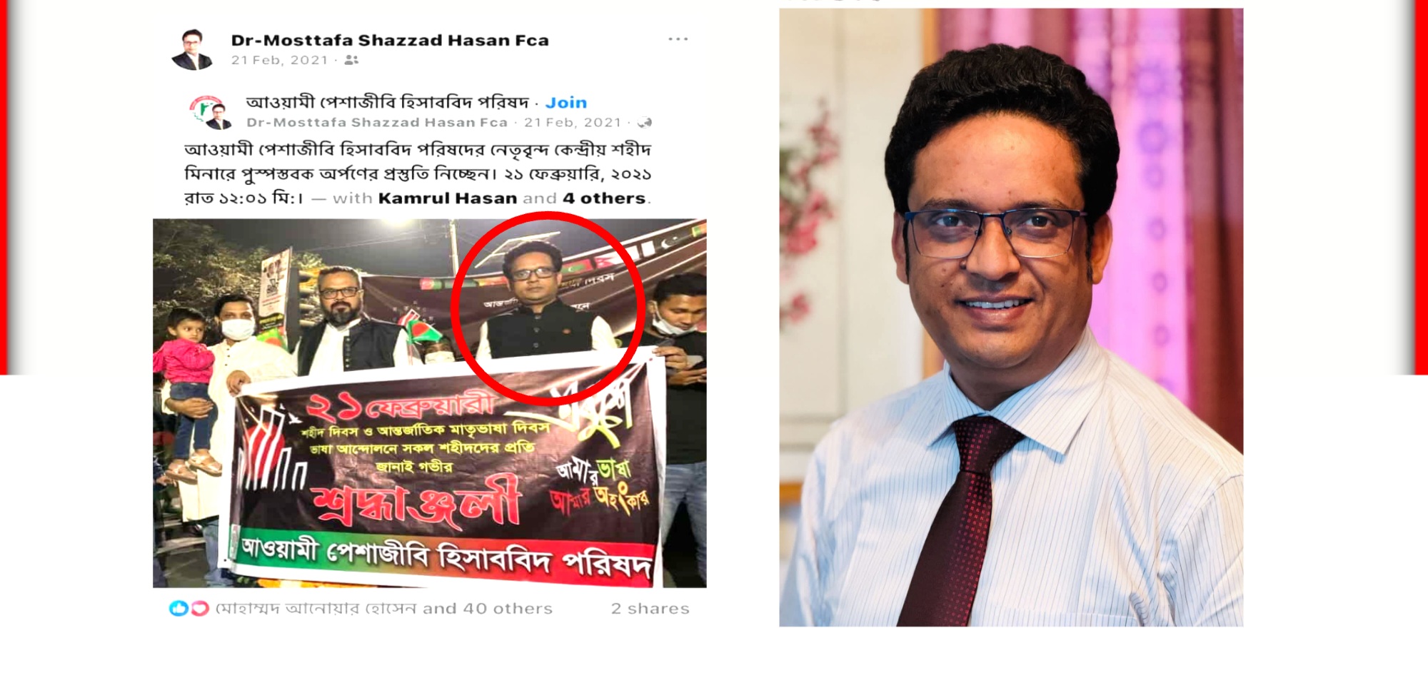 বর্তমানে আওয়ামী পেশাজীবি হিসাববিদ পরিষদের নেতা মোস্তফা সাজ্জাদ এফসিএ বিদেশে অবস্থান করায় এই বিষয়ে তার বক্তব্য নেয়া সম্ভব হয়নি।