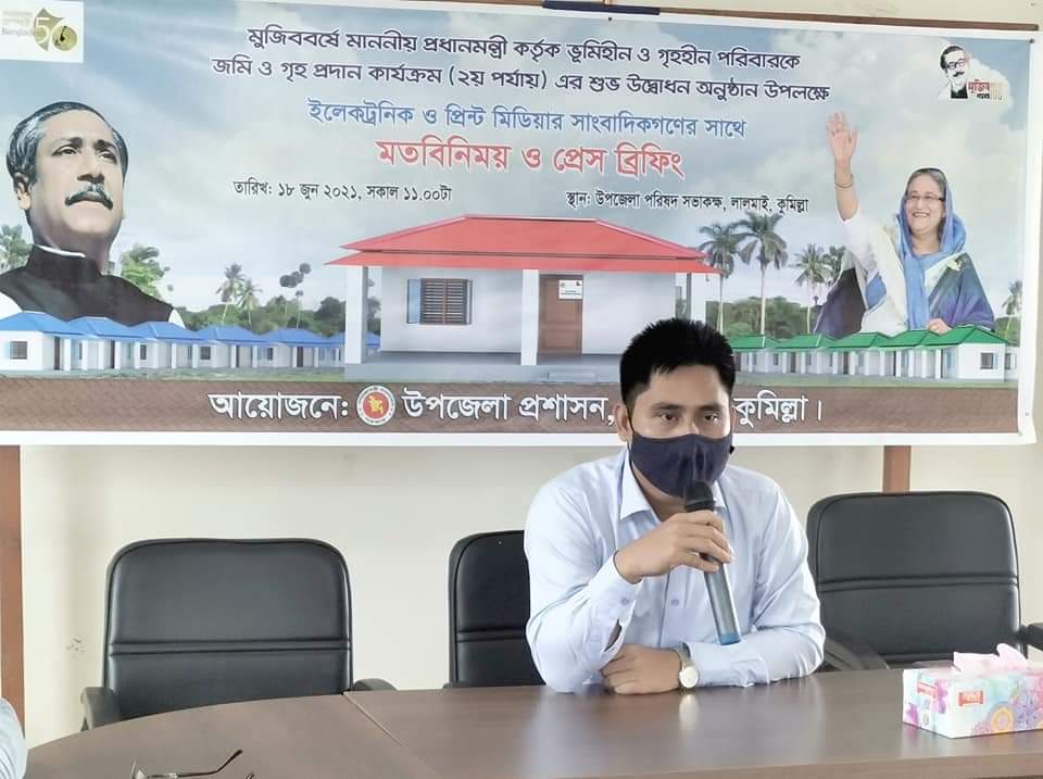 মুজিববর্ষ উপলক্ষে মাননীয় প্রধানমন্ত্রী কর্তৃক ভূমিহীন ও গৃহহীন পরিবারকে জমি ও গৃহ প্রদান কার্যক্রম (২য় পর্যায়) এর শুভ উদ্বোধন অনুষ্ঠান উপলক্ষে ইলেকট্রনিক ও প্রিন্ট মিডিয়ার সাংবাদিকগণের সাথে মতবিনিময় ও প্রেস ব্রিফিং করেন কুমিল্লার লালমাই উপজেলা নির্বাহী অফিসার অজিত দেব।