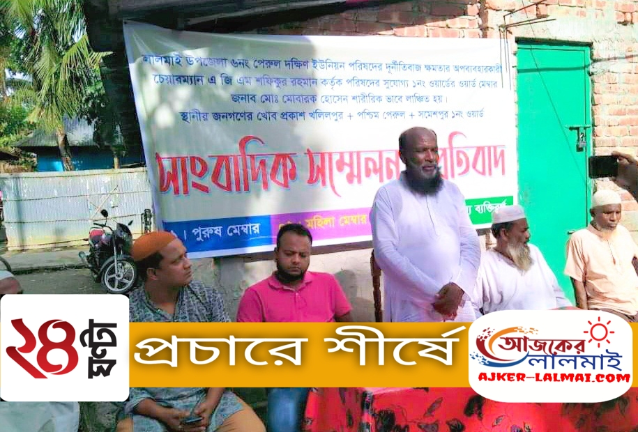 লালমাই প্রতিনিধি ঃ কুমিল্লার লালমাই উপজেলার ৬নং পেরুল দক্ষিণ ইউনিয়নের চেয়ারম্যান এজিএম সফিকুর রহমান কর্তৃক একই ইউপির ০১নং ওয়ার্ড সদস্য মোঃ মোবারক হোসেনকে ১৯ই আগষ্ট বিকাল ৫টায় মারধর করায় আজ শুক্রবার ২১ই আগষ্ট বিকাল তিনটায় সদস্যের নিজ বাড়িতে সাংবাদিক সম্মেলন করেছেন। সাংবাদিক সম্মেলনে ইউপি সদস্য মোবারক হোসেন জানান, খলিলপুর গ্রামের বড় মসজিদের ইমাম হাফেজ মাওলানা মোজাম্মেল হকের বিরুদ্ধে প্রতিবেশি আবদুল মতিন ইউপি চেয়ারম্যান এজিএম সফিকুর রহমানের গ্রাম আদালতে অভিযোগ দায়ের করে। অভিযোগের প্রেক্ষিতে সফিক চেয়ারম্যান ইমাম হাফেজ মাওলানা মোজাম্মেল হককে বোর্ড অফিসে আসতে বলে। ইউপি সদস্য ওই মসজিদের সহ-সভাপতি হওয়ায় ইমাম সাহেব তাকে চেয়ারম্যান কার্যালয়ে নিয়ে যায়। চেয়ারম্যান অফিসে প্রবেশের পর চেয়ারম্যান ইউপি সদস্য মোবারককে অকথ্য ভাষায় গালি গালাজ করতে থাকে, পরে চেয়ার থেকে উঠে লাঠি দিয়ে আঘাত করে। তাকে হত্যার উদ্দেশ্যে গলা চেপে ধরে। ইউপি সদস্যের চিৎকার শুনে ইউপি সচিব মোঃ মাকসুদুর রহমান, আওয়ামী নেতা মিজানুর রহমান, ইমাম সাহেবসহ সবাই উদ্ধার করে ইউপি সদস্যকে লাকসাম সরকারী হাসপাতালে চিকিৎসার জন্য পাঠান। এর আগেও একাধিকবার ইউপি সদস্যকে শারীরিকভাবে লাঞ্চিত করেছে সফিক চেয়ারম্যান। ইউপি সদস্য মোস্তফা কামাল বলেন, ইউনিয়নের গ্রাম পুলিশসহ সাধারণ লোকজনদেরকে কারনে অকারনে সফিক চেয়ারম্যান মারধর করে। চেয়ারম্যান এজিএম সফিকুর রহমানের দূর্ণীতি ও অনিয়মের কথা যে কেউ বললেই তার উপর চড়াও হন। সরকারী চাকুরী দেওয়ার নাম করে এলাকার নিরীহ লোকজনের কাছ থেকে লক্ষ লক্ষ টাকা আত্মসাৎ করার অভিযোগ রয়েছে চেয়ারম্যানের বিরুদ্ধে । চেয়ারম্যান সফিকুর রহমান সহজ সরল লোকজনের নামে ব্যাংক ঋণ তুলে নিজেই লক্ষ লক্ষ টাকা হাতিয়ে নিয়ে গেছে যা উপজেলার সকল নেতা-কর্মীরা জানে। তার বিরুদ্ধে বিধবা ভাতা, বয়স্ক ভাতা, পঙ্গু ভাতা, ভিজিডি, ভিজিএফ, মাতৃত্বকালীন ভাতাসহ সকল ভাতায় দূর্ণীতির অভিযোগ রয়েছে। ইউপি সদস্য মোবারক হোসেন ১লক্ষ টাকা সফিক চেয়ারম্যানের নিকট পাওনা আছে। তার অত্যাচারে স্থানীয় ইউনিয়ন আওয়ামীলীগ ও অঙ্গসংগঠনের ত্যাগী নেতা-কর্মীরা অতিষ্ঠ। ইউপি সদস্যগণ ও স্থানীয় জনগণ এলাকার সংসদ সদস্য, গণপ্রজাতন্ত্রী বাংলাদেশ সরকারের মাননীয় অর্থমন্ত্রীর ও প্রশাসনের হস্তক্ষেপ কামনা করছেন।