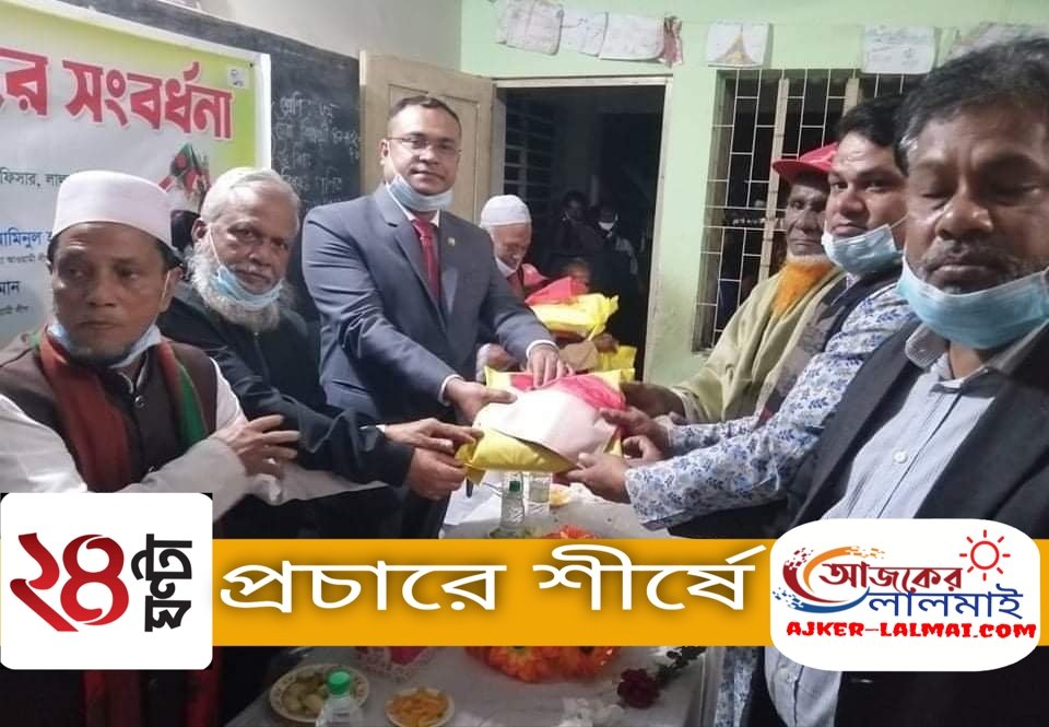 -রিয়াজ মজুমদার (বিশেষ প্রতিনিধি) ১৭ই ডিসেম্বর কুমিল্লার লালমাই উপজেলায় বীর মুক্তিযোদ্ধাদের সংবর্ধনা দেওয়া হয়। উপজেলার বাকই উত্তর ইউনিয়ন আওয়ামী লীগের আয়োজনে ইউপি চেয়ারম্যান আইউব আলীর সভাপতিত্বে ও ইউনিয়ন আওয়ামী লীগের সাধারণ সম্পাদক মিজানুর রহমানের সঞ্চালনায় সংবর্ধনা অনুষ্ঠানে প্রধান অতিথি ছিলেন উপজেলা নির্বাহী অফিসার মোঃ নজরুল ইসলাম। বিশেষ অতিথি ছিলেন উপজেলা ঘাতক দালাল নির্মূল কমিটির সভাপতি বীর মুক্তিযোদ্ধা দ্বীন মোহাম্মদ, উপজেলা আওয়ামী লীগের মুক্তিযোদ্ধা বিষয়ক সম্পাদক বীর মুক্তিযোদ্ধা আমিনুল হক আমিন, উপজেলা আওয়ামী লীগের উপদেষ্টা কমিটির সদস্য আবদুল বারী, ইউনিয়ন আওয়ামী লীগ সভাপতি মোঃ দেলোয়ার হোসেন দেলু, বাকই উত্তর ইউনিয়ন যুবলীগের যুগ্ন আহবায়ক জাবের হোসেন জাবেদ, ইউনিয়ন ছাত্রলীগ সভাপতি শাহ পরান সওদাগর। প্রধান অতিথির বক্তব্যে ইউএনও মোঃ নজরুল ইসলাম বলেন জাতির পিতা বঙ্গবন্ধু শেখ মুজিবুর রহমানের ডাকে সাড়া দিয়ে মুক্তিযোদ্ধারা এদেশকে স্বাধীন করে, আমাদেরকে একটি লাল সবুজের পতাকা উপহার দেন, আমি নিজেও একজন মুক্তিযোদ্ধার সন্তান তাই আমিও গর্বিত। সংবর্ধিত মুক্তিযোদ্ধারা হলেন বীর খন্দকার সফিকুর রহমান, বীর মুক্তিযোদ্ধা সফিকুল হোসেন, বীর মুক্তিযোদ্ধা সামছুল হক, বীর মুক্তিযোদ্ধা তাজুল ইসলাম মজুমদার, বীর মুক্তিযোদ্ধা আইউব আলী, বীর মুক্তিযোদ্ধা সাইদুর রহমান, বীর মুক্তিযোদ্ধা নুরুল হক, বীর মুক্তিযোদ্ধা হাবিবুর রহমান চৌধুরী।