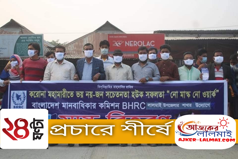 বাংলাদেশ মানবাধিকার কমিশন লালমাই উপজেলা শাখার উদ্যােগে বাগমারা বাজারে পথযাত্রীদের মাঝে মাস্ক বিতরন করা হয়।