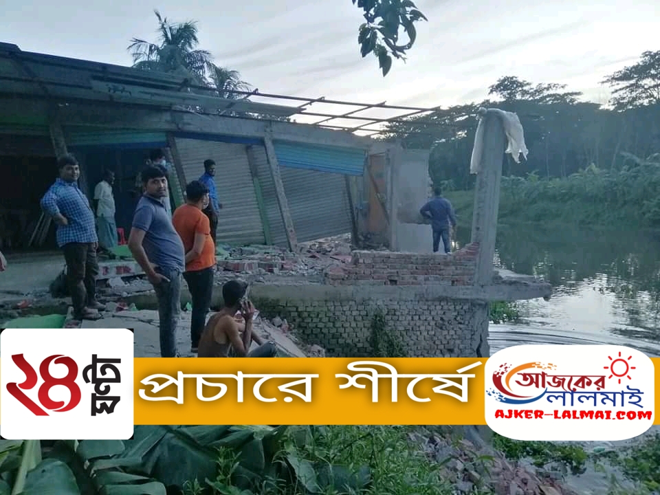 গতকাল শুক্রবার লালমাই উপজেলা বাগমারা (দঃ) বাজার জিরো পয়েন্টের পশ্চিম পাশে ডাকাতিয়া নদীর পাড় ঘেষা মীর চৌধুরী মার্কেট ধসে পড়েছে।