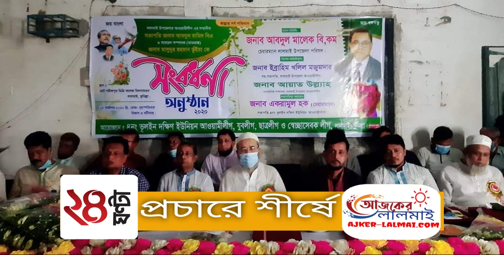 গত ১৫ই অক্টোবর উপজেলার ভূলইন দঃ ইউনিয়ন আ' লীগ, যুবলীগ, স্বেচ্ছাসেবক লীগ ও ছাত্রলীগের উদ্যোগে উপজেলা আ' লীগের সভাপতি ও ভারপ্রাপ্ত সাধারন সম্পাদককে আনুষ্ঠানিক বাবে সংবর্ধনা দেওয়া হয়। উক্ত অনুষ্ঠানটি ভূলইন দক্ষিণ ইউনিয়ন পরিষদের চেয়ারম্যান একরামুল হক একরামের সভাপতিত্বে শুরু হয়ে। প্রধান অতিথি হিসেবে উপস্থিত ছিলেন লালমাই উপজেলা পরিষদের চেয়ারম্যান আবদুল মালেক বিকম, বিশেষ অতিথি হিসেবে উপস্থিত ছিলেন উপজেলা আ' লীগের সহ- সভাপতি ইব্রাহীম খলিল মজুমদার, উপজেলা আ' লীগের সাংগঠনি সম্পাদক আয়াতউল্যাহ, উপস্থিত ছিলেন, উপজেলা আ' লীগের সিনিয়ন সহ সভাপতি আবদুল মতিন চেয়ারম্যান, উপজেলা আ'লীগের যুগ্ন সাধারন সম্পাদক ও বাগমারা উঃ ইউনিয়ন পরিষদের চেয়ারম্যান আবুল কাশেম, উপজেলা আ' লীগের সদস্য মুজিবুর রহমান মুজিব, সদর দক্ষিণ ও লালমাই উপজেলা যুবলীগের আহবায়ক আবদুল মোতালেব, বাগমারা দঃ ইউনিয়ন আ' লীগের সভাপতি আমিনুল ইসলাম সওদাগর, ভূলইন উঃ ইউনিয়ন পরিষদের চেয়ারম্যান আবদুর রহিম, বেলঘর দঃ ইউনিয়ন পরিষদের চেয়ারম্যান আবদুল মন্নান মনু, বেলঘর উঃ ইউনিয়ন পরিষদের চেয়ারম্যান আবুল খায়ের, ভূলইন দঃ ইউনিয়ন আ' লীগের সাধারন সম্পাদক ও উদযাপন কমিটির আহবায়ক রুহুল আমিন, সাংগঠনিক সম্পাদক রুহুল আমিন মজুমদার, ঢাকাস্থ লালমাই উপজেলা সমিতির সাধারন সম্পাদক বিল্লাল হোসেন, ছোট শরীফপুর উচ্চ বিদ্যালয়ের কো-অপ্ট সদস্য ও সাবেক ইউনিয়ন যুবলীগের সাধারন সম্পাদক ফরিদ আহম্মদ, সদর দঃ উলজেলা ছাত্রলীগের যুগ্ন আহবায়ক আক্তার হোসেন পারভেজ, যুগ্ন আহবায়ক কাজী কামরুল হাসান ভূট্টো, বাগমার দঃ ইউনিয়ন যুবলীগের আহবায়ক কাউসার মোর্শেদ, ভূলইন দঃ ইউনিয়ন যুবলীগের যুগ্ন আহবায়ক কামরুজামান লিটন মজুমদার, বাগমার দঃ ইউনিয়ন ছাত্রলীগের সভাপতি আবদুল হান্নান মিয়াজি, ইউনিয়ন স্বেচ্ছাসেবকলীগের আহবায়ক মোঃ রাসেল, যুগ্ন আহবায়ক মনির হোসেন, ছোট শরীফপুর ডিগ্রী কলেজ ছাত্রলীগের আহবায়ক ফয়সাল মাহমুদ প্রমুখ। প্রোগ্রাম সঞ্চারণা করেন ইউনিয়ন ছাত্রলীগের আহবায়ক প্রভাষক আমান উল্যাহ আমান। এসময় উপজেলা আ' লীগের সাধারন সম্পাদক মাসুদুর রহমান ভূইয়াকে ফুলেল শুভেচ্ছা জানান, বিভিন্ন ইউনিয়ন থেকে আগত অতিথি বর্গ ও ইউনিয়নের সকল নেতৃবৃন্দ, ব্যবসায়ী বৃন্দ, তাছাড়া সংবর্ধনা অনুষ্ঠানের প্রধান অতিথি ও বিশেষ অতিথিদের ফুল দিয়ে বরন এবং সকলকে সম্মাননা ক্রেস্ট প্রদান করেন উদযাপন কমিটি, সাধারন সম্পাদকের বক্তব্য মাসুদুর রহমান ভূইয়া বলেন, বক্তব্যর প্রথমে আমি কৃত্তজ্ঞতা প্রকাশ করছি বিশ্বসের অর্থমন্ত্রী আ হ ম মোস্তফা কামাল সাহেবের প্রতি এবং আমার আন্তরি ভালবাসা আজকের সংবর্ধনা অনুষ্ঠানের আয়োজক কমিটি সহ সকলের জন্য আপনাদ