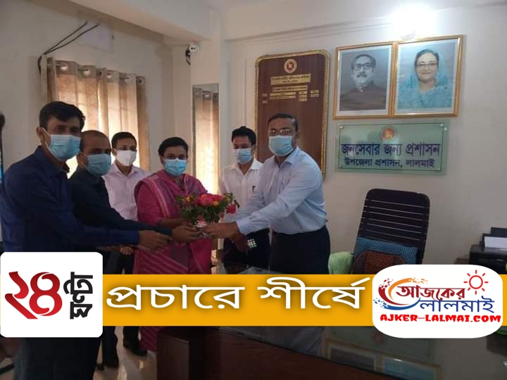 বুধবার বিকালে লালমাই উপজেলা নির্বাহি অফিসার এর কার্যালয়ে নব যোগদানকৃত উপজেলা সহকারী ভূমি কমিশনারকে ফুল দিয়ে বরণ করেন লালমাই উপজেলা নির্বাহী অফিসার মোঃ নজরুল ইসলাম।