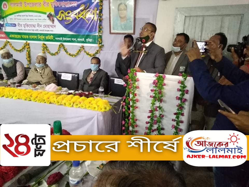 -রিয়াজ মোরশেদ মাসুদ (লালমাই) গতকাল ২৫ ডিসেম্বর কুমিল্লার লালমাই উপজেলার আলিশ্বর আদর্শ উচ্চ বিদ্যালয় হল রুমে উপজেলার ১১৪ জন বীর মুক্তিযোদ্ধাদের সংবর্ধনা দেওয়া হয়েছে। উপজেলা ঘাতক দালাল নির্মূল কমিটির আয়োজনে বীর মুক্তিযোদ্ধা দীন মোহাম্মাদ এর সভাপতিত্বে ও প্রদীপ মজুমদারের সঞ্চালনায় অনুষ্ঠানে উপস্থিত ছিলেন, উপজেলা চেয়ারম্যান আব্দুল মালেক বিকম, ইউএনও মোঃ নজরুল ইসলাম, বৃহত্তর লাকসামের যুদ্ধকালীন কমান্ডার বীর মুক্তিযোদ্ধা আবুল বাশার, অর্থমন্ত্রীর একান্ত সহকারী সচিব কেএম সিংহ রতন, সদর দক্ষিণ উপজেলা ভাইস চেয়ারম্যান আবদুল হাই বাবলু, কুমিল্লা দক্ষিণ জেলা আওয়ামী লীগের যুগ্ন সাধারণ সম্পাদক অধ্যক্ষ আব্দুল মমিন মজুমদার, লালমাই উপজেলা ভাইস চেয়ারম্যান আলহাজ্ব মিজানুর রহমান, সদর দক্ষিণ উপজেলা পরিষদের সাবেক মহিলা ভাইস চেয়ারম্যান মাহমুদা আক্তার, কুমিল্লা জেলা ঘাদানিক কমিটির সভাপতি অধ্যাপক দীলিপ মজুমদার, লালমাই ক্লাবের সাধারণ সম্পাদক অধ্যাপক রুহুল আমিন, উপজেলা ক্রীড়া সংস্থার সাধারণ সম্পাদক ডাঃ শাহ আলম, উপজেলা আওয়ামী লীগের সাংগঠনিক সম্পাদক আয়াত উল্লাহ, উপজেলা ঘাদানিক কমিটির সাধারন সম্পাদক মানিক মজুমদার, পেরুল উত্তর ইউনিয়নের সাবেক চেয়ারম্যান আবুল হাসেম মজুমদার, বাকই উত্তর ইউনিয়ন আওয়ামী লীগের সাধারণ সম্পাদক মোঃ মিজানুর রহমান, বাগমারা দক্ষিণ ইউনিয়ন আওয়ামী লীগের সাধারন সম্পাদক নিজাম উদ্দিন, ঘাদানিকের সাংগঠনিক সম্পাদক মীর হোসেন, লোকমান হোসেন, মহিলা সম্পাদিকা রোজলিপ, প্রচার ও প্রকাশনা সম্পাদক শামীম হায়দার ।