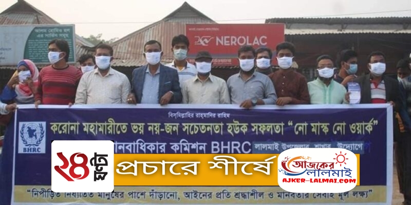 বাগমারায় মানবাধিকার কমিশনের উদ্যোগে মাস্ক বিতরণ।