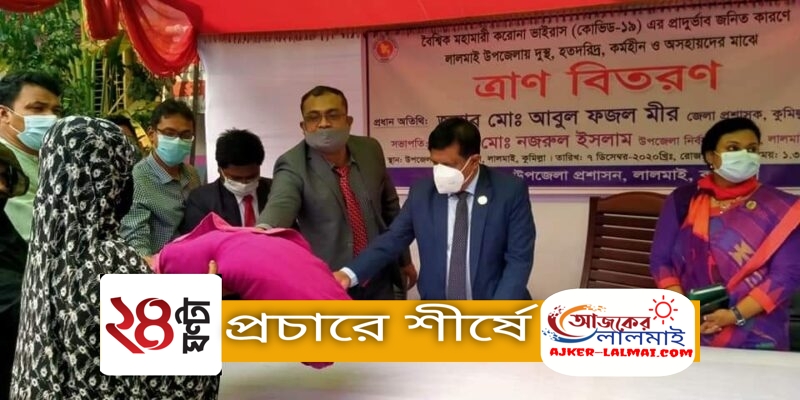 লালমাইয়ে কর্মহীনদের মাঝে উপজেলা প্রশাসনের ত্রাণ বিতরণ